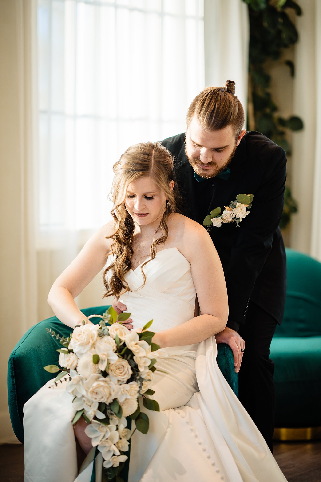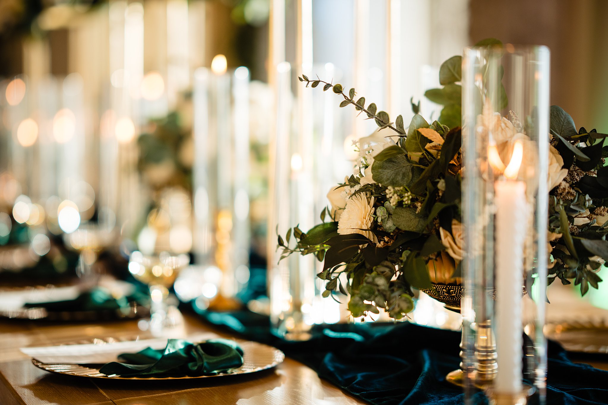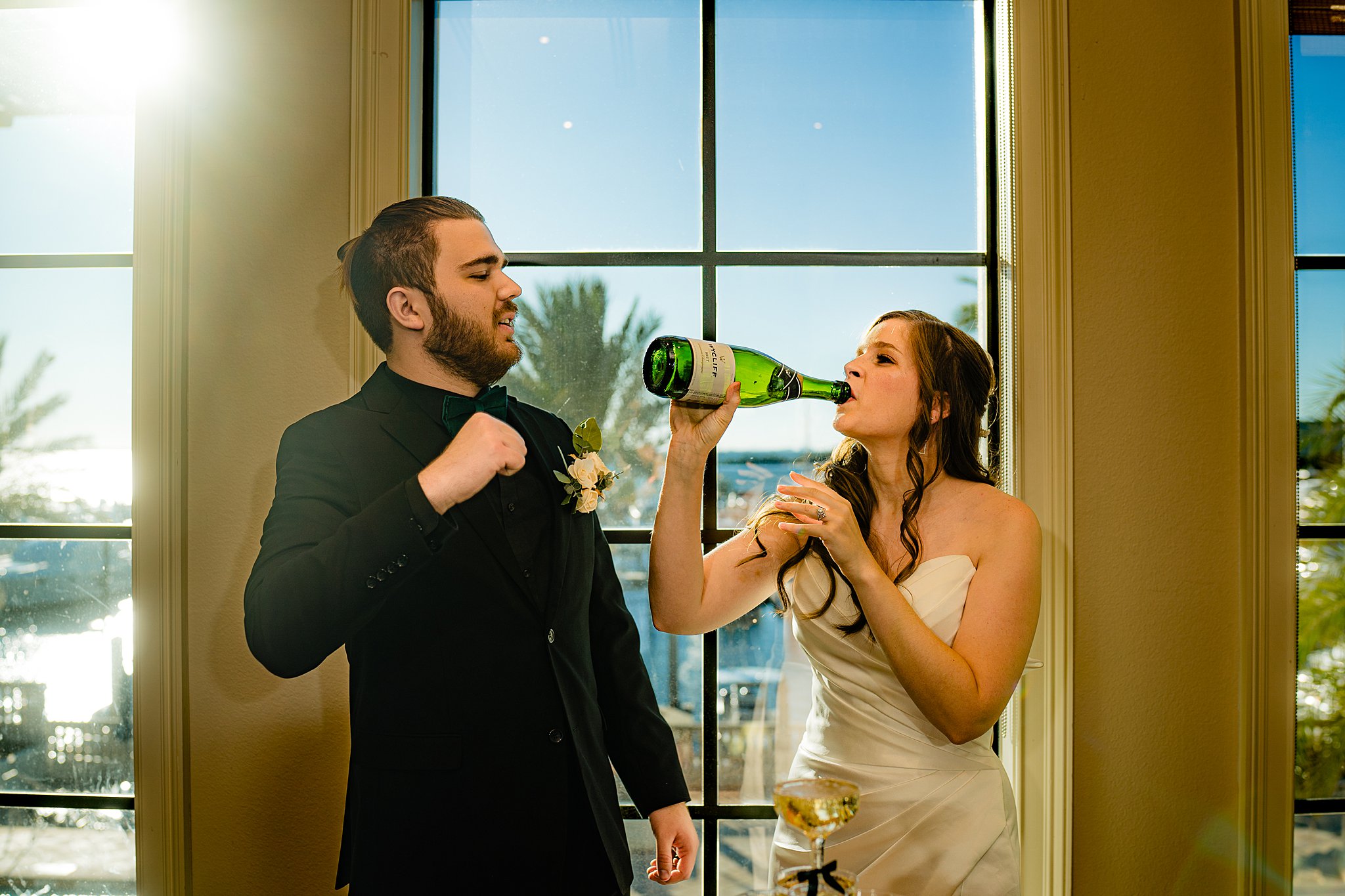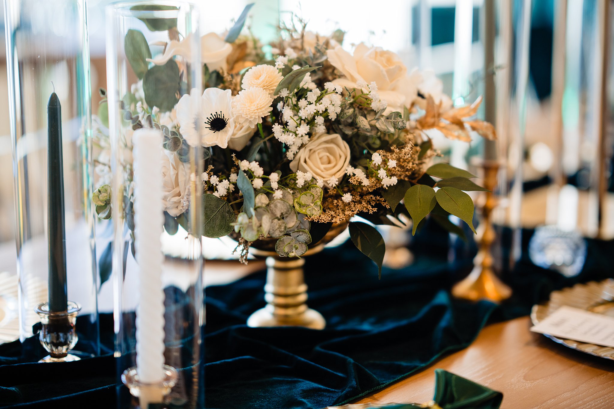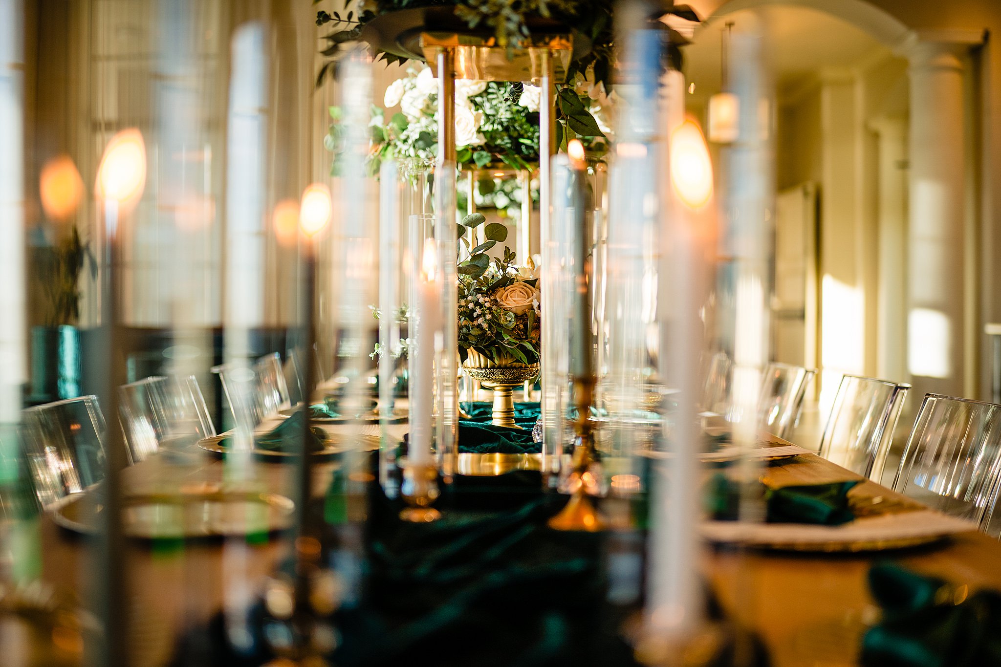The collaboration between talented vendors brought the vision to life, blending classic and contemporary styles. From Shy Chic Boutique’s statement florals to the stunning gown by Bearer of the Bling Bridal and décor from Stella Rose Events, every detail shined. The mix of emerald, ivory, and ash wood created an unforgettable setting framed by the marina views and the relaxed comfort that made this shoot truly special.