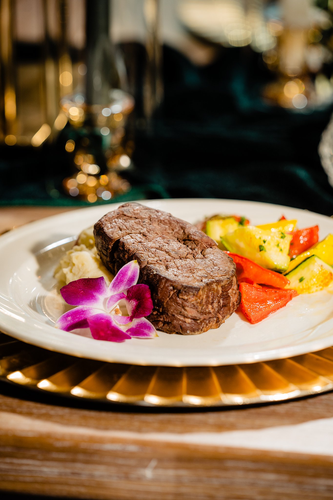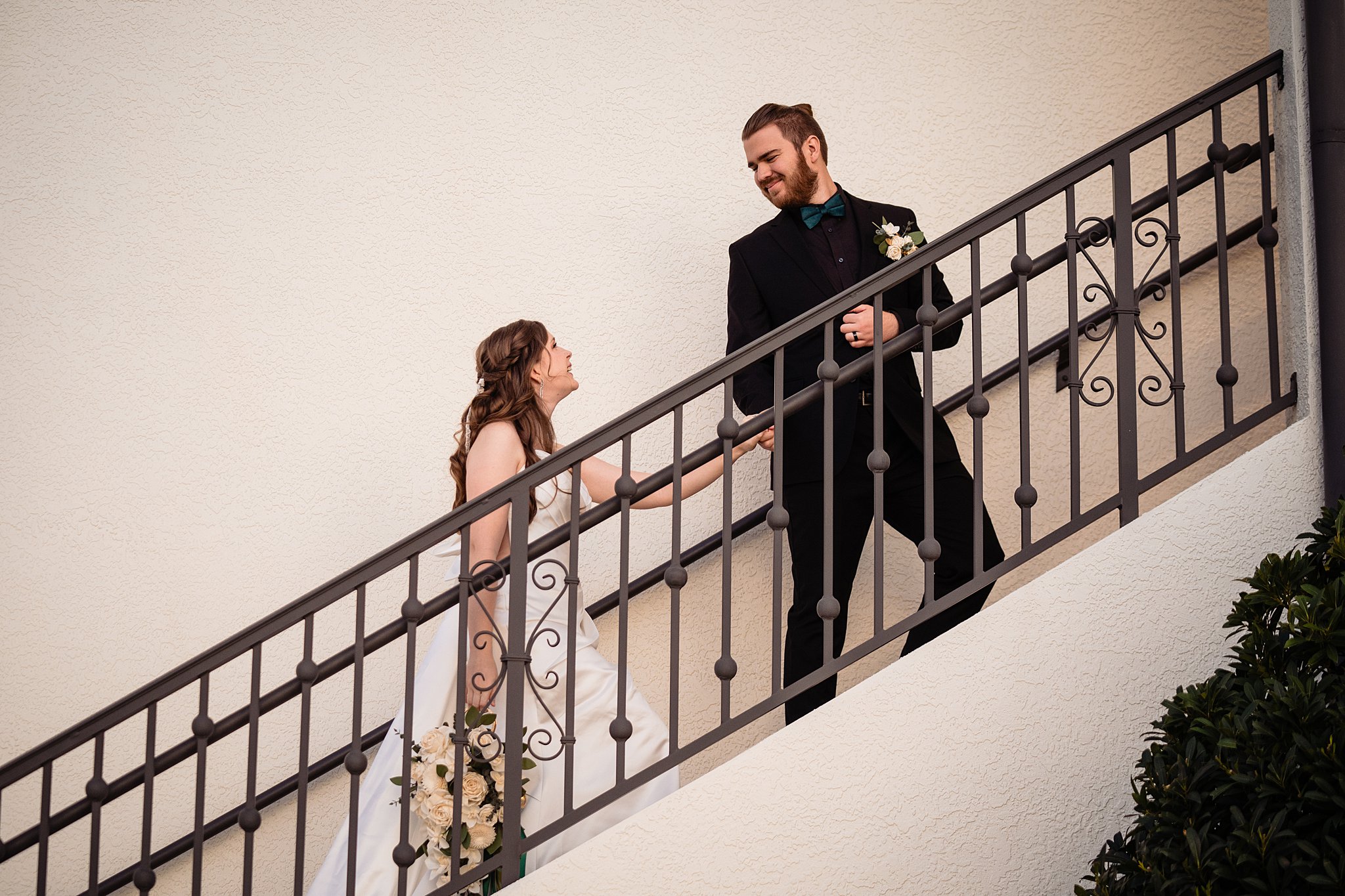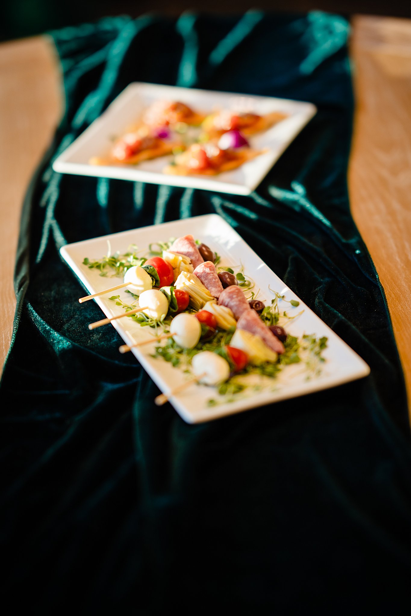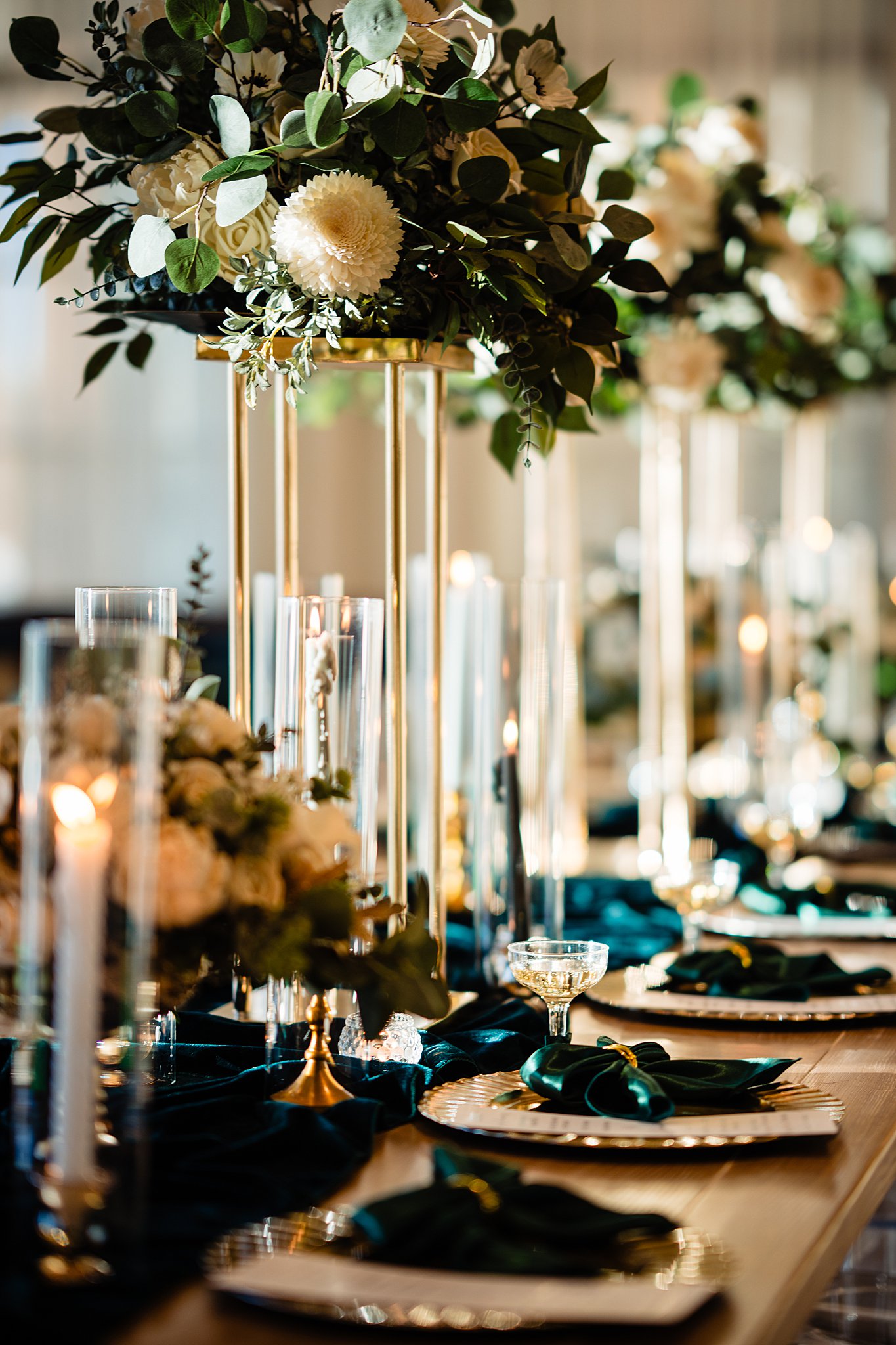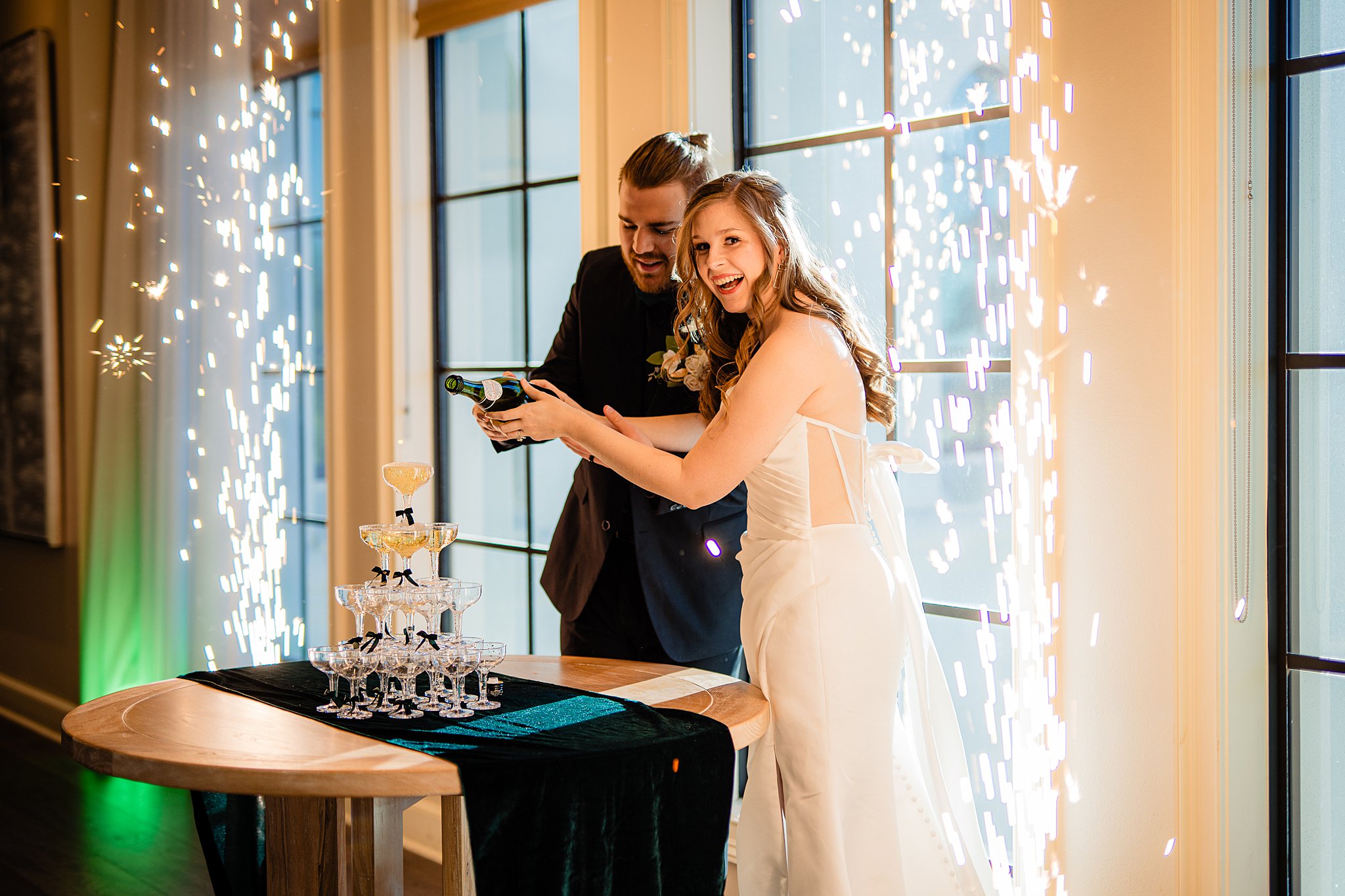 The collaboration between talented vendors brought the vision to life, blending classic and contemporary styles. From Shy Chic Boutique’s statement florals to the stunning gown by Bearer of the Bling Bridal and décor from Stella Rose Events, every detail shined. The mix of emerald, ivory, and ash wood created an unforgettable setting framed by the marina views and the relaxed comfort that made this shoot truly special.