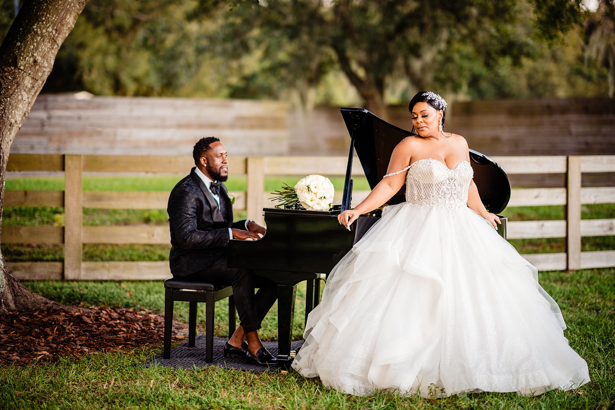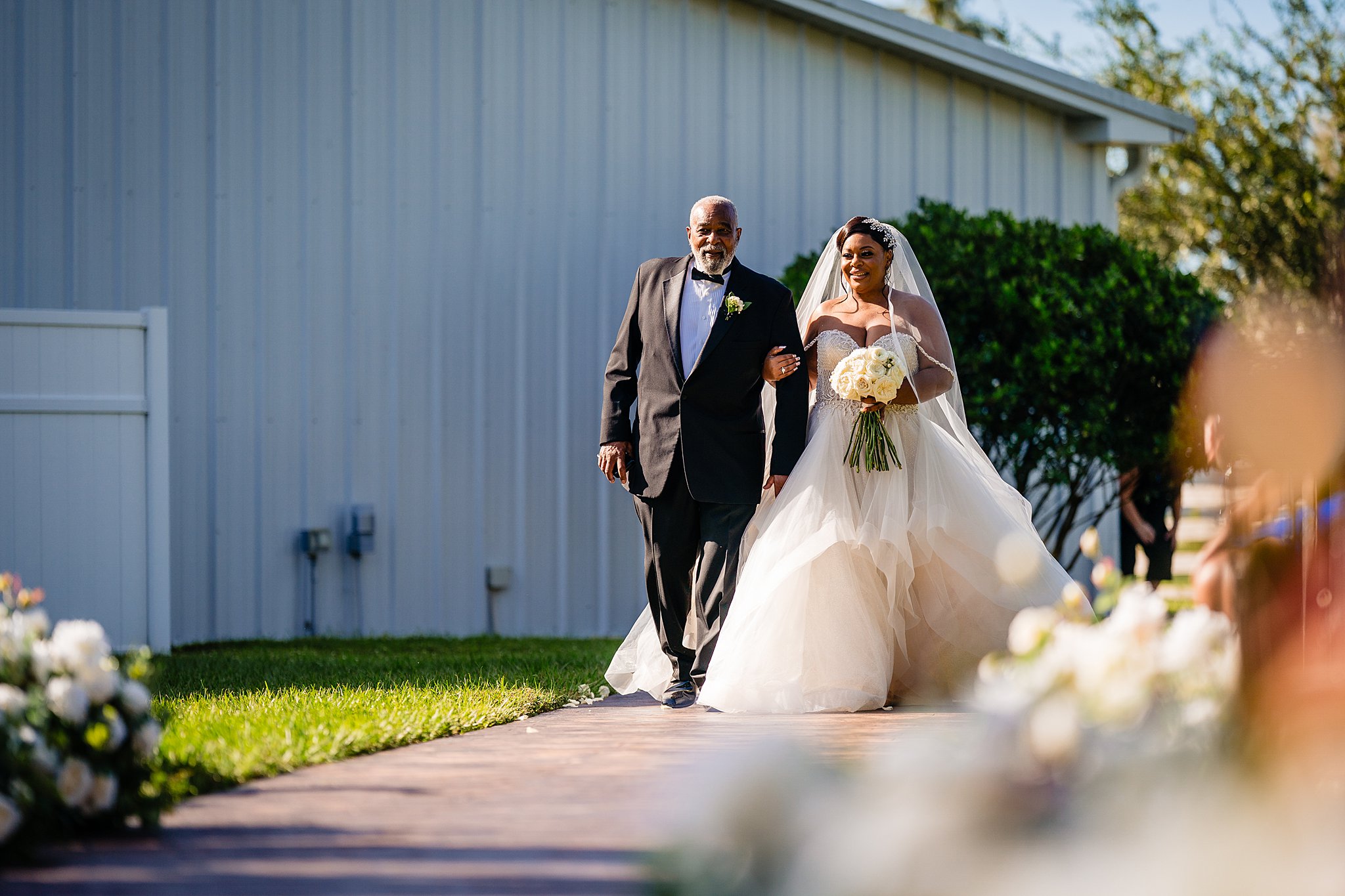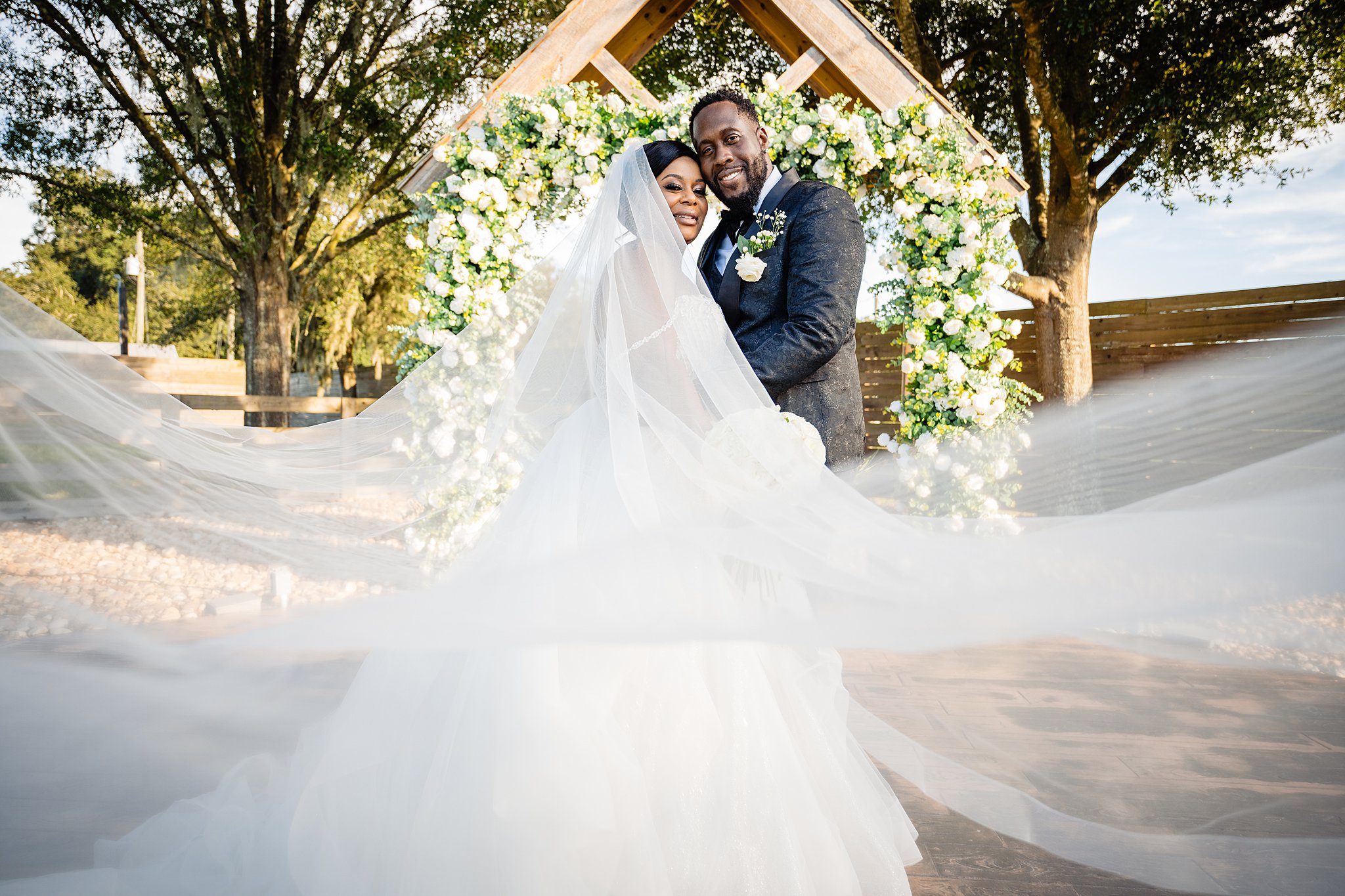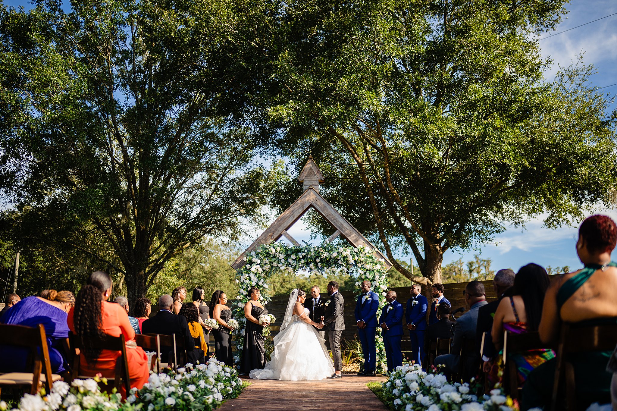 Kim and Rich’s unforgettable celebration at Cow Creek Farm was a stunning blend of elegance, emotion, and pure cinematic beauty. As Sarasota wedding photographers and Tampa wedding photographers, we were inspired by every detail of their day. Their wedding began with the warm Florida sun casting a golden glow over the ceremony space, where lush florals, polished décor, and heartfelt moments set the tone for an extraordinary experience. Kim looked radiant in her flowing gown, while Rich carried himself with the confident charm that perfectly matched the glamour of their Hollywood inspired vision.