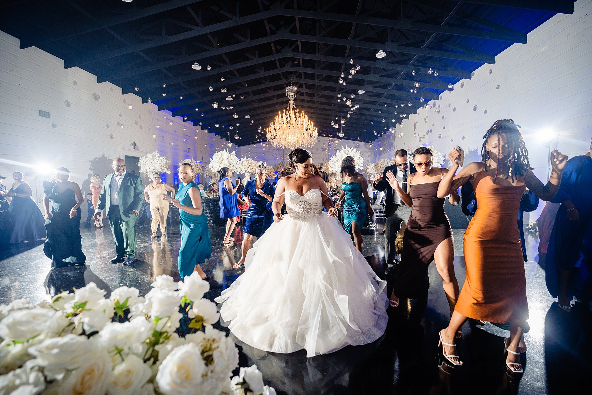 Inside the reception space, every inch of Cow Creek Farm transformed into a world of luxury. Crystal chandeliers shimmered overhead, the orchestra of live music filled the air, and the dance floor came alive with joy from family and friends who traveled to celebrate this beautiful couple. As Tampa and Sarasota wedding photographers and videographers, we had the honor of creating bold and artistic portraits that brought their story to life. Kim and Rich quickly became family to us, and documenting a day this meaningful felt like capturing the heart of who they are. This wedding is one we will never forget.