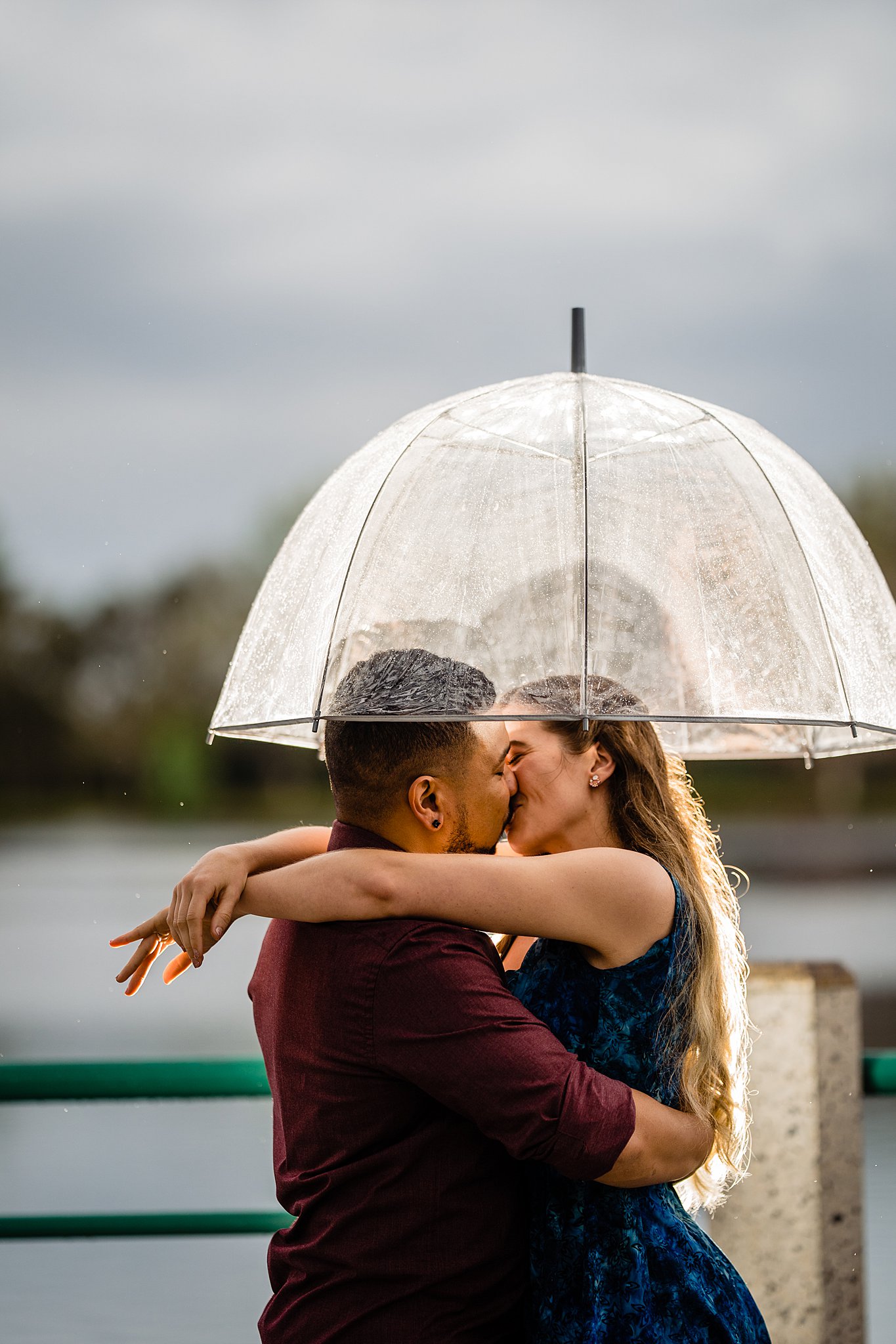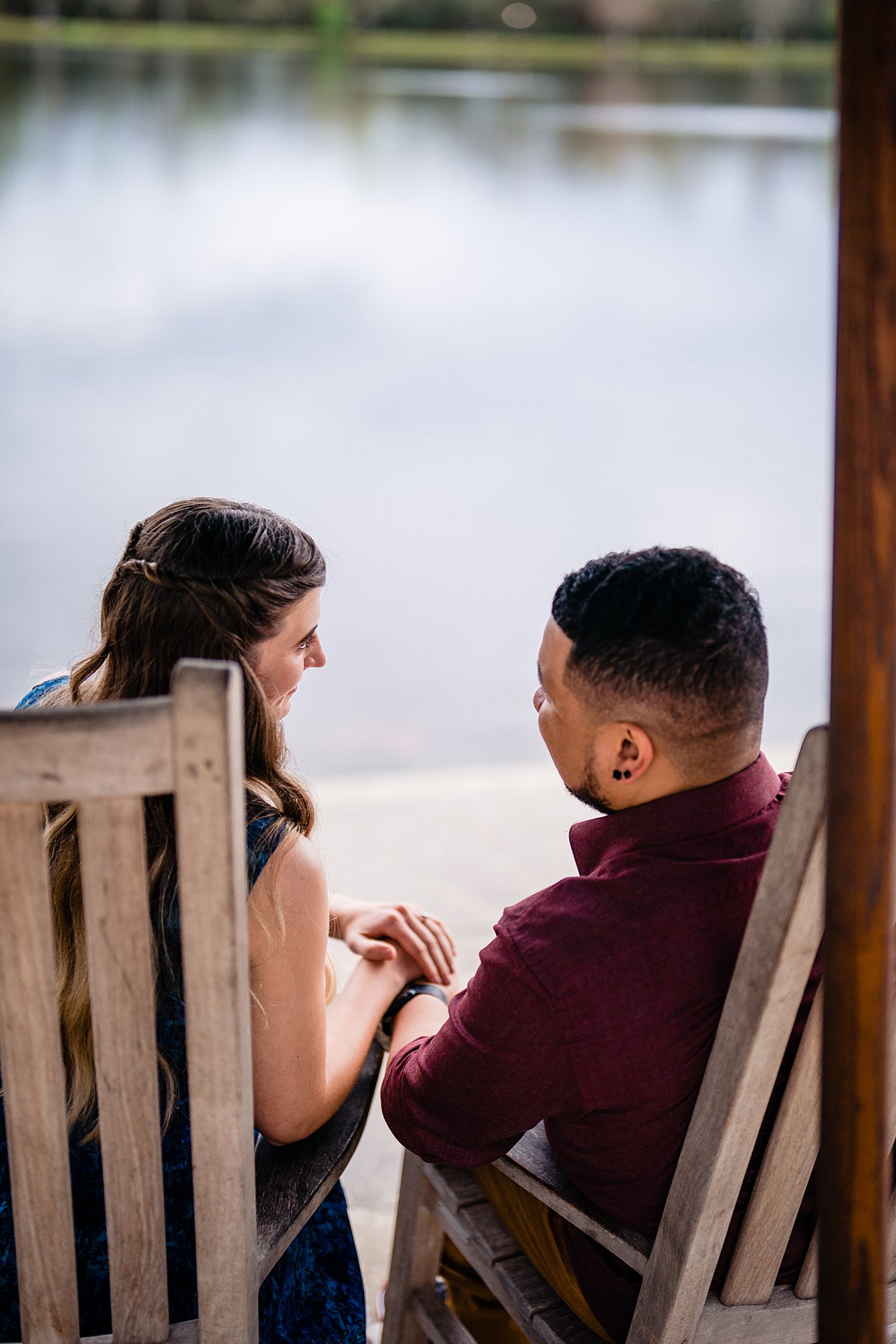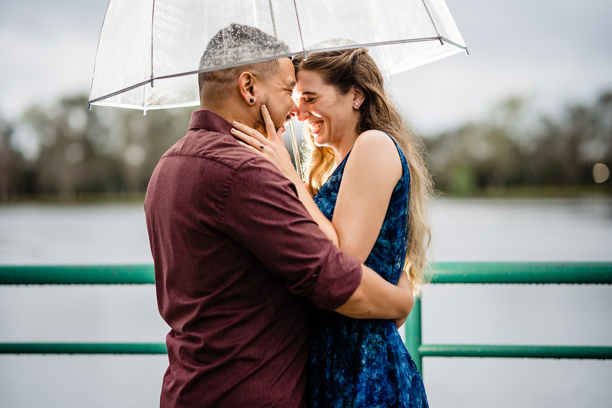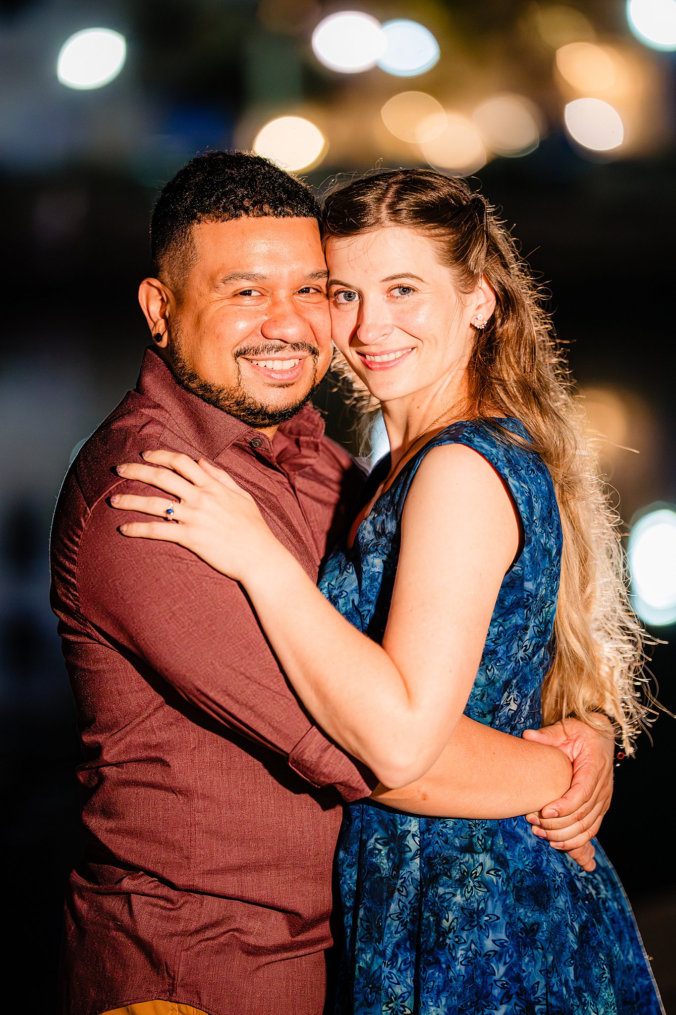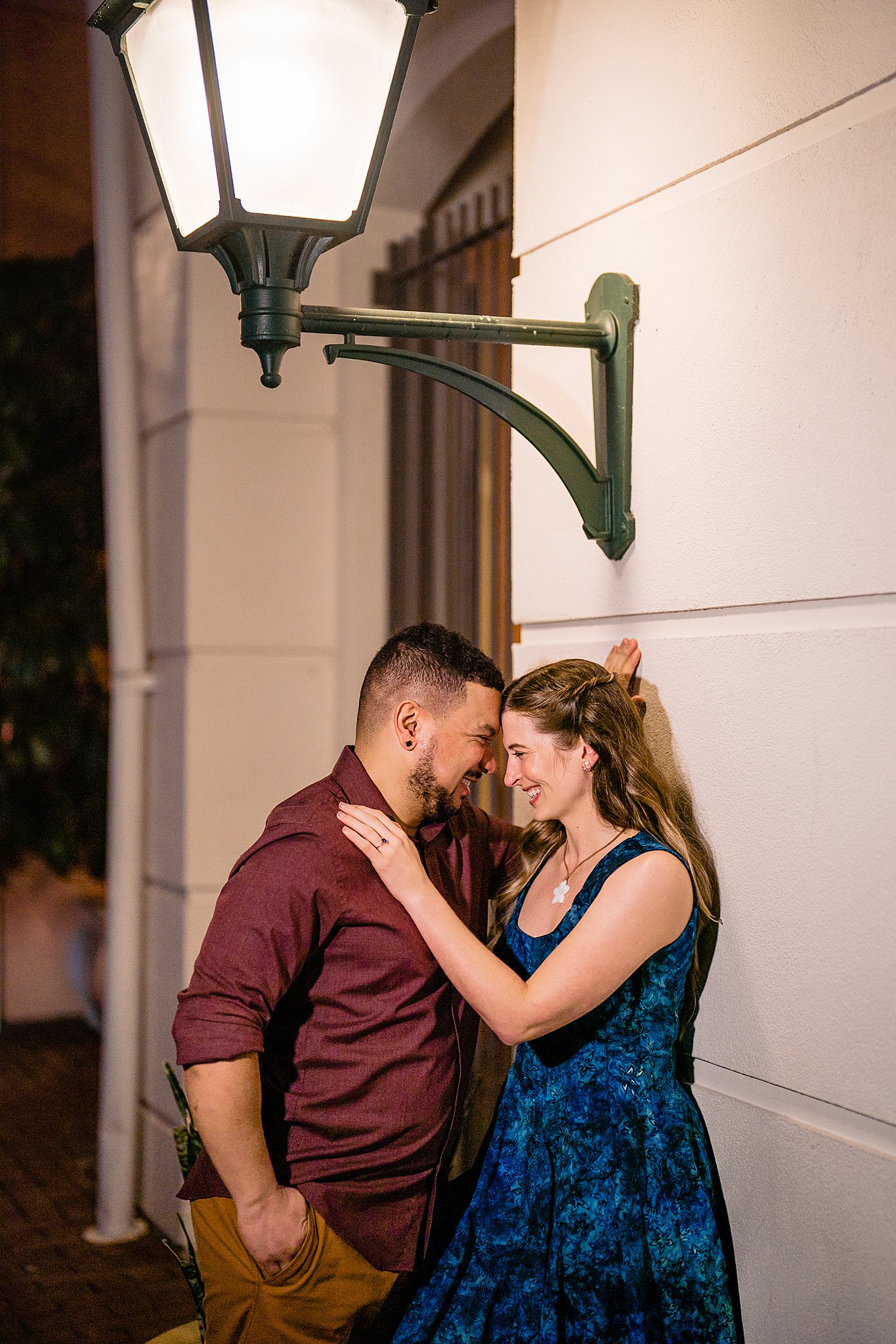 Dax and Gil’s engagement session in Downtown Celebration started with a bit of rain, but that just made the evening even more magical. As the clouds cleared, the streets emptied, leaving us with a quiet and romantic city backdrop that felt like it belonged just to them. They first met at work, and from the moment we started photographing, their natural connection and laughter made it clear their story was something special.