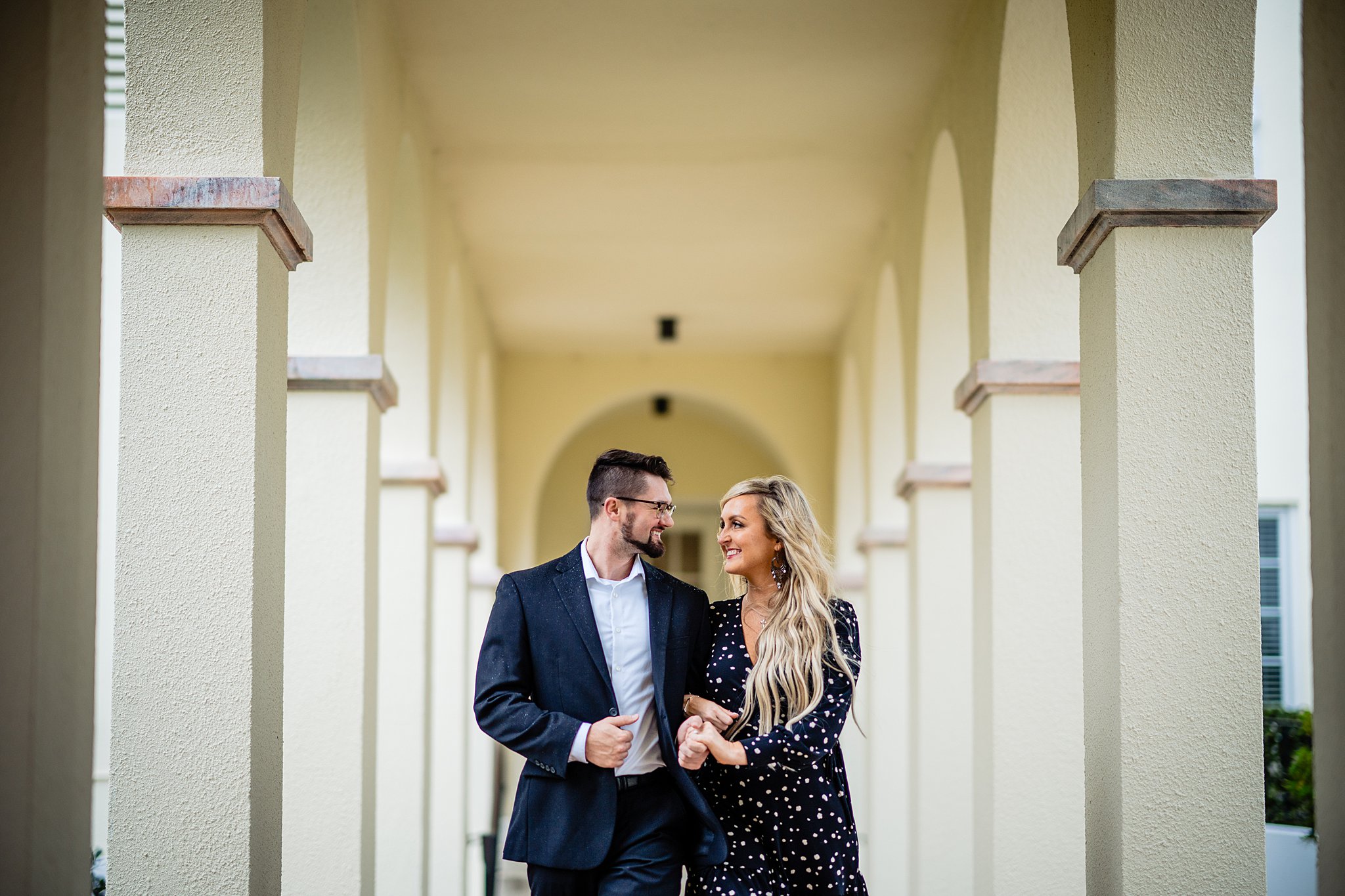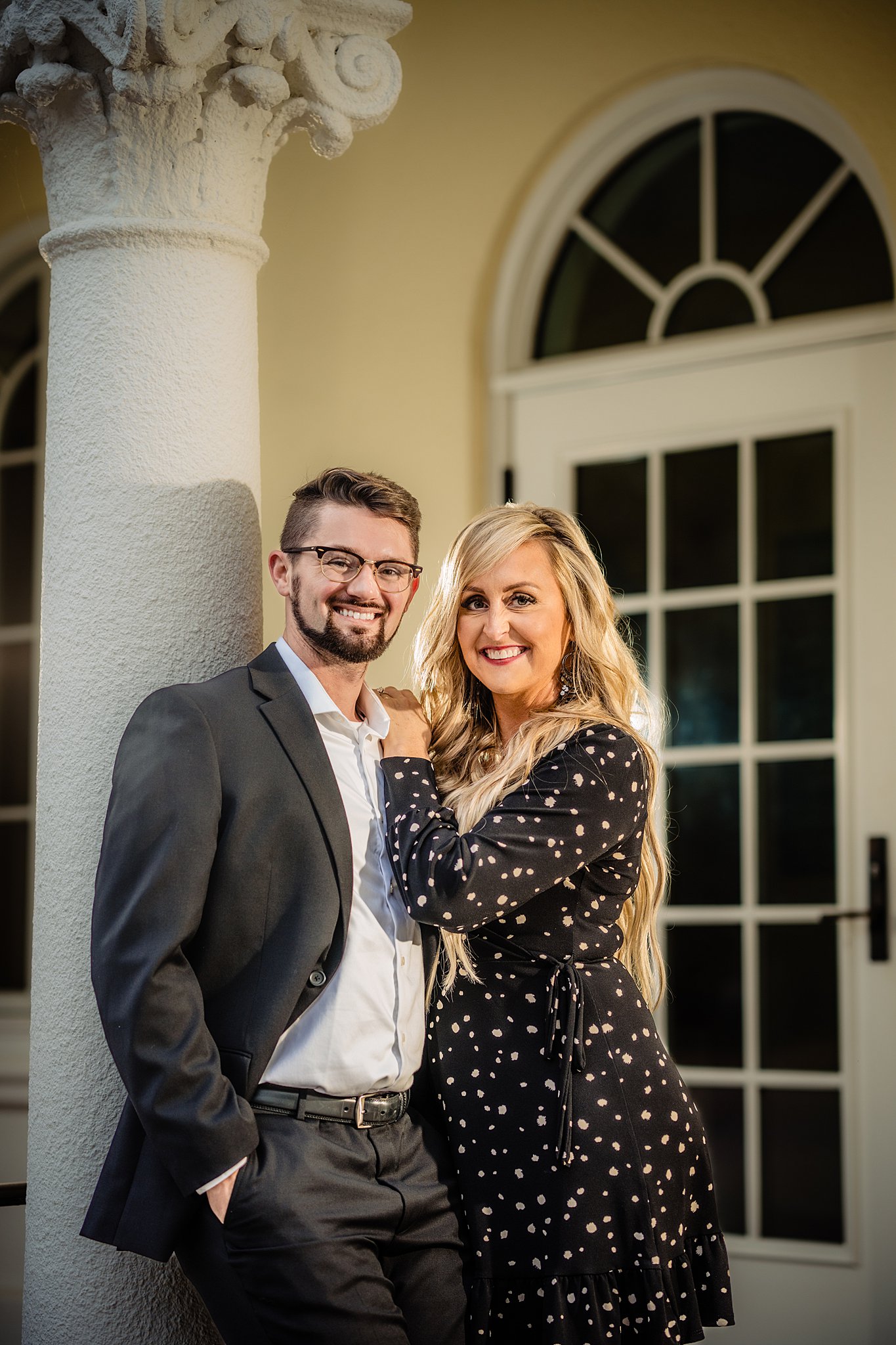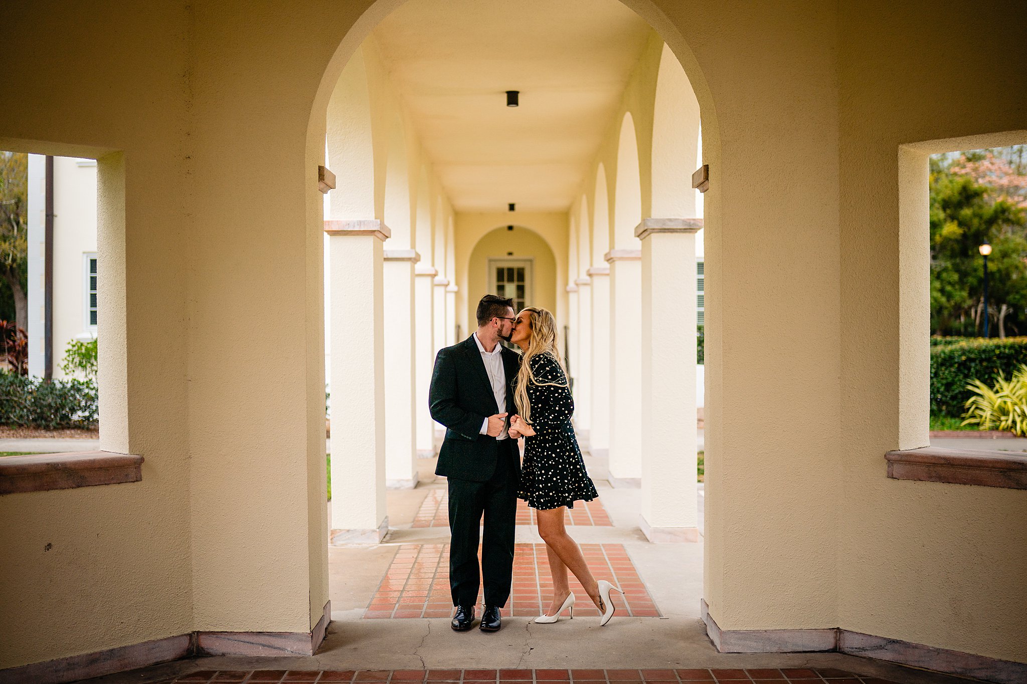 Kelsey and Tod’s engagement session was the perfect mix of elegance and fun. We started among the historic arches at New College of Florida where soft light and a passing rain shower set a romantic tone. They laughed through every moment, turning the weather into part of the story.