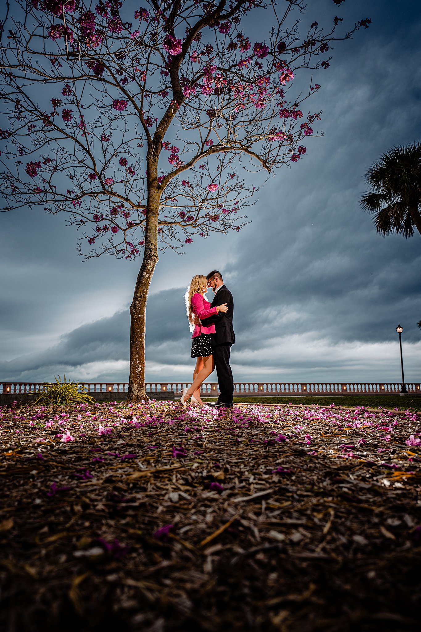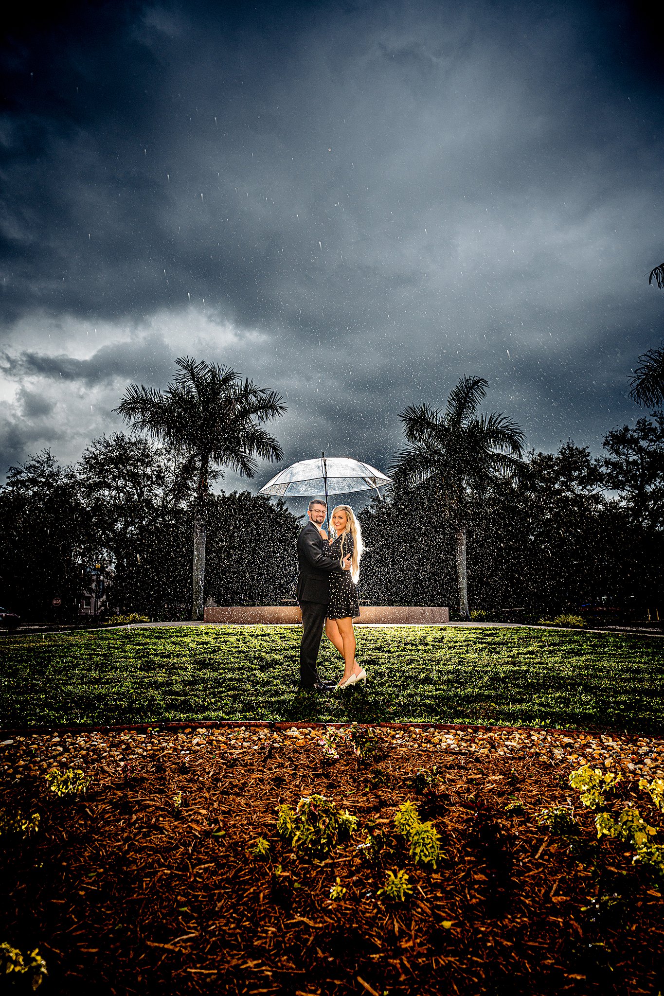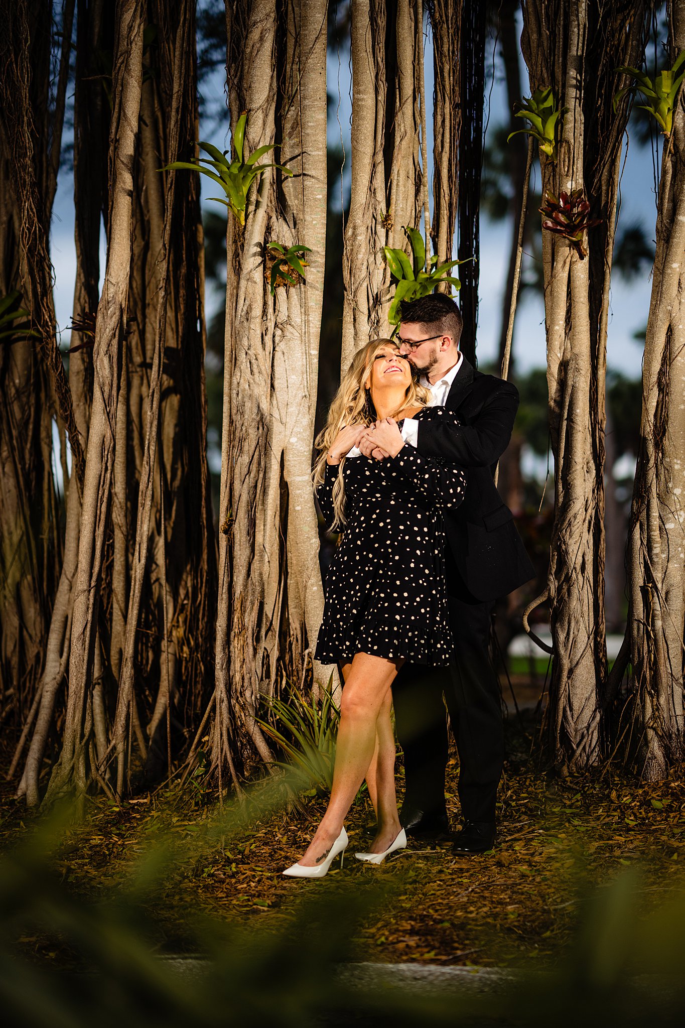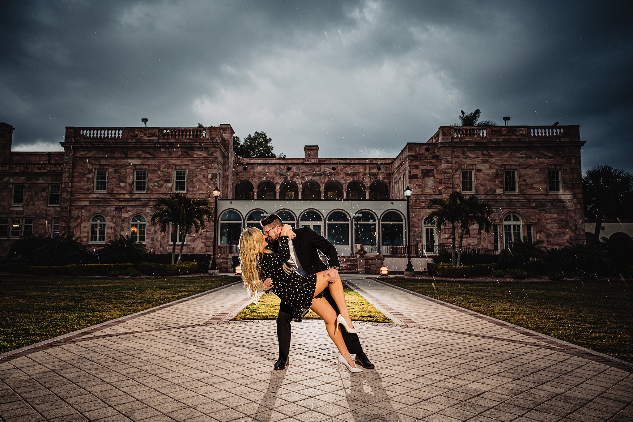 Kelsey and Tod’s engagement session was the perfect mix of elegance and fun. We started among the historic arches at New College of Florida where soft light and a passing rain shower set a romantic tone. They laughed through every moment, turning the weather into part of the story.