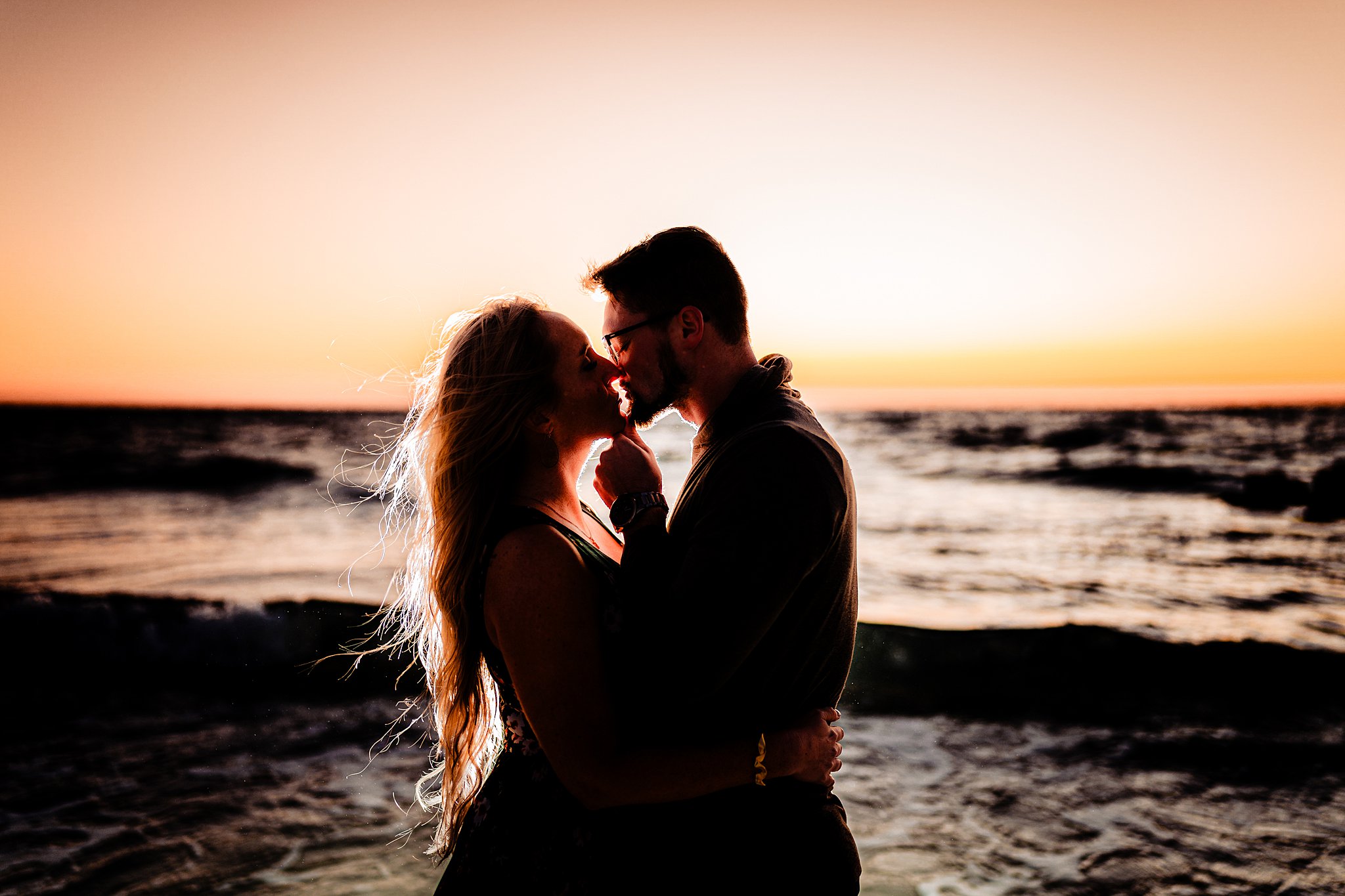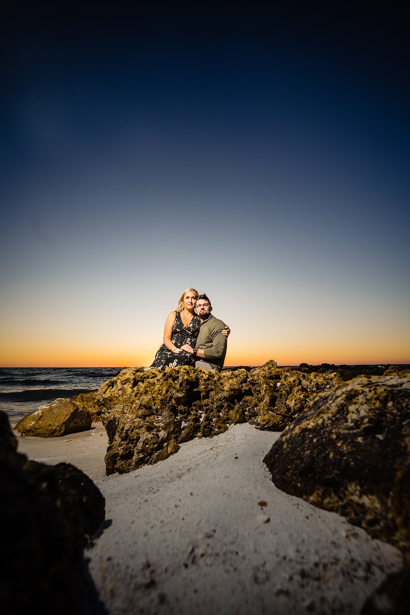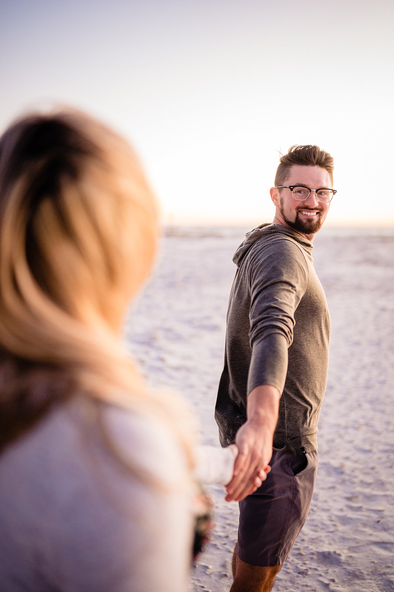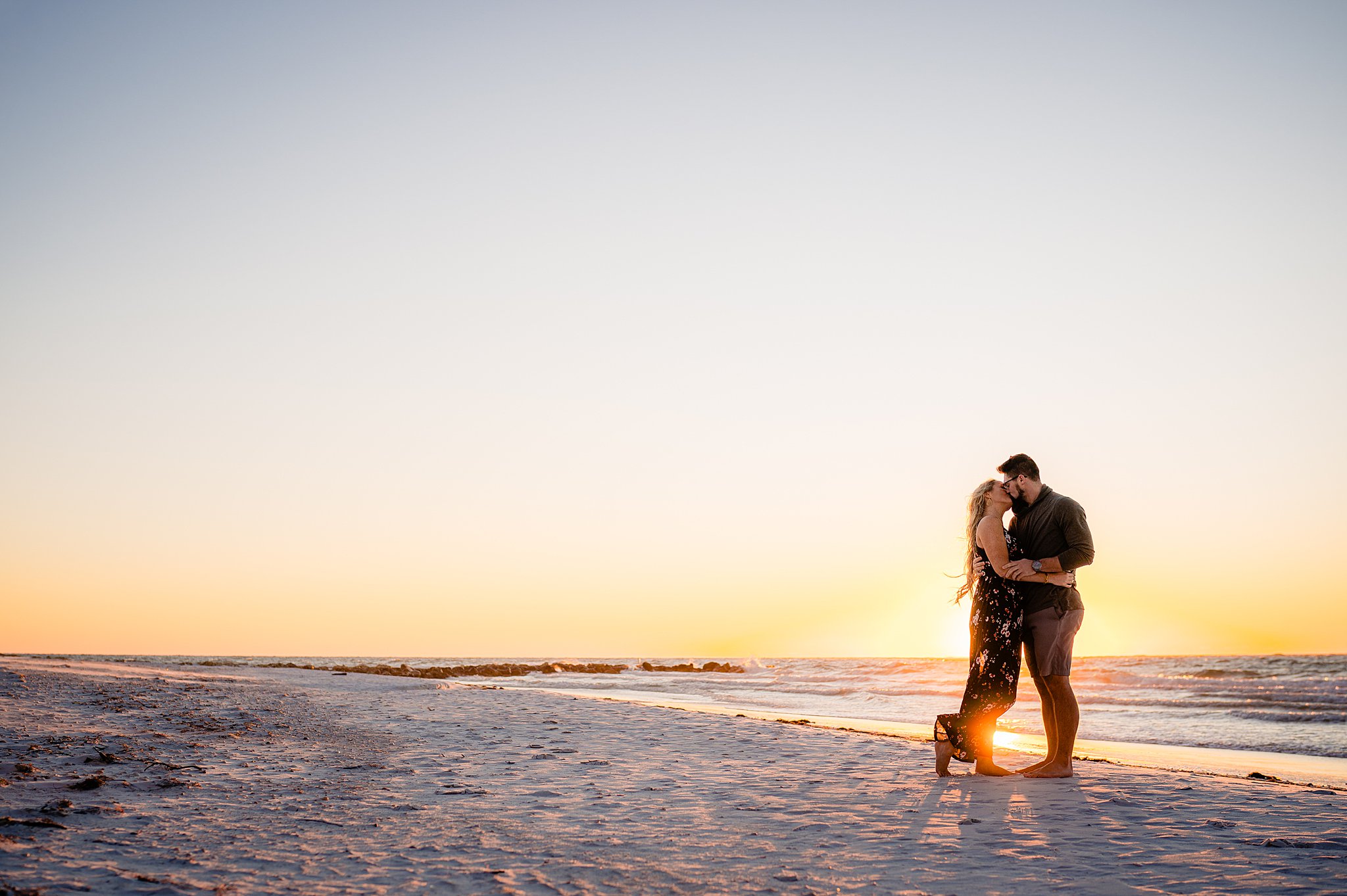 As the skies cleared, we made our way to Longboat Key for sunset. The breeze, the waves, and the golden light created a dreamy finish to their day. Every smile and quiet glance showed how effortlessly they connect, and we can’t wait to capture their wedding this April.