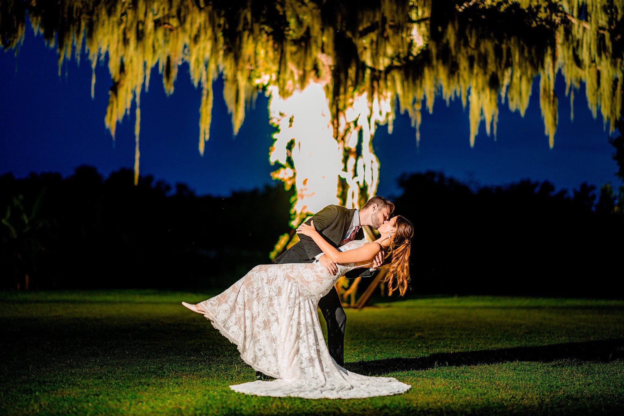 This romantic styled shoot at Worthington For Events brought elegance and creativity together in a space filled with history and southern charm. Alex and Maddie joined us once more in their wedding attire, perfectly embodying modern romance against the backdrop of Worthington’s lakeside garden and rustic architecture. From golden-hour portraits surrounded by Spanish moss to intimate dances beneath the glowing chandelier, every moment reflected the venue’s timeless beauty and storybook atmosphere.